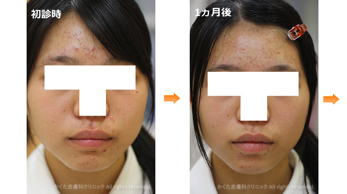 特におでこと口周りのニキビで来院し、約半年でニキビに悩まなくなるまで改善した症例です。