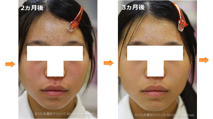 治療開始3ヶ月、ニキビが消失し、ほぼ治療に目処が経ってきた段階。 |