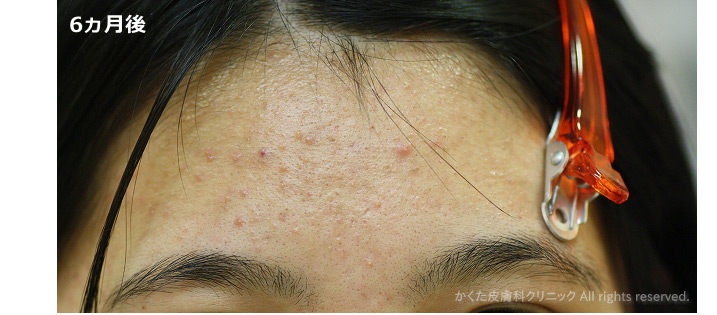 治療開始6ヶ月、ニキビの赤みも取れ、新生ニキビもほぼ抑えられています。 |